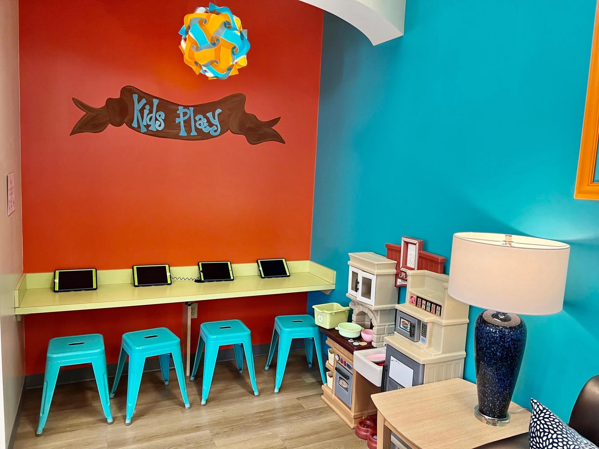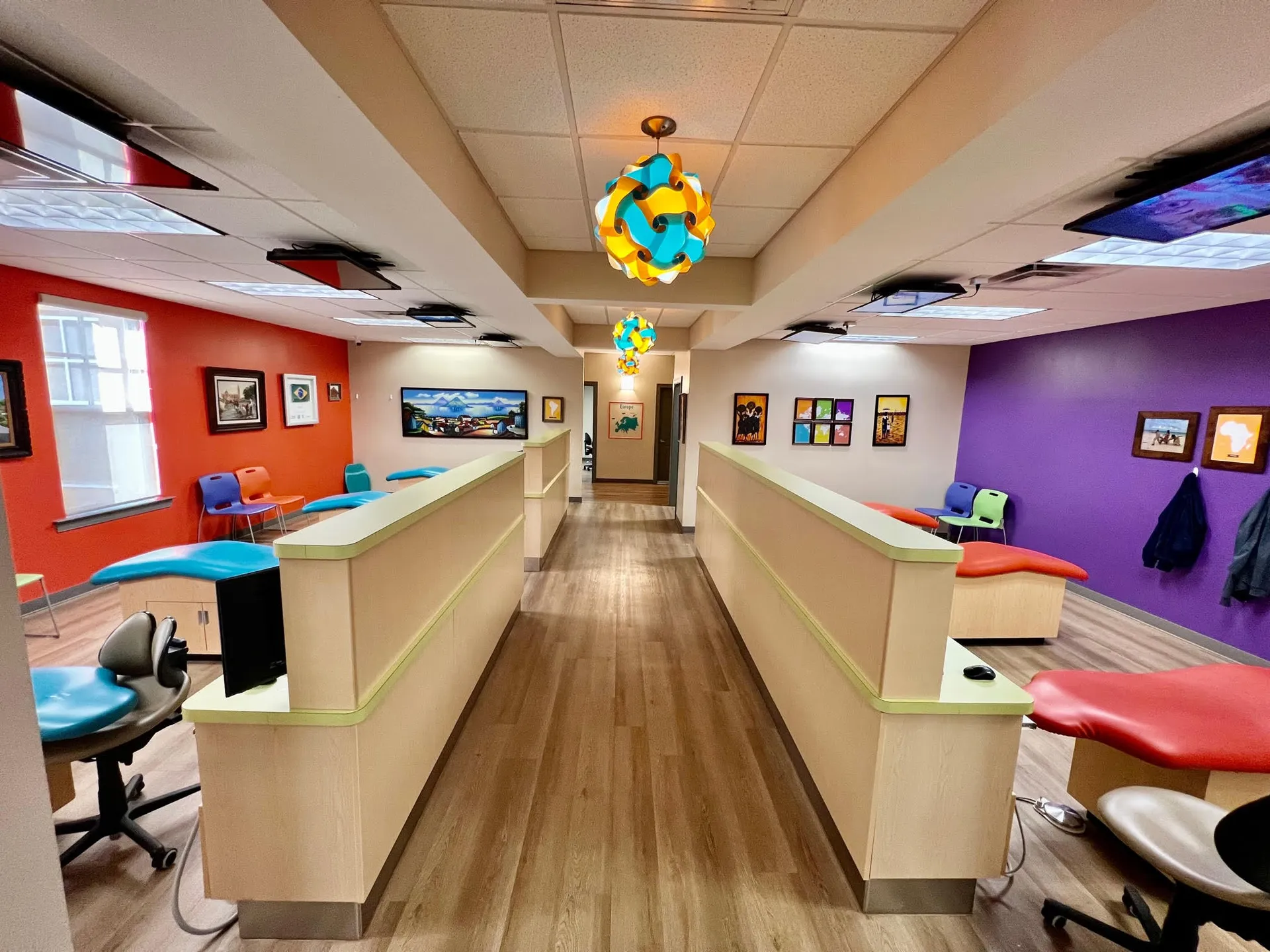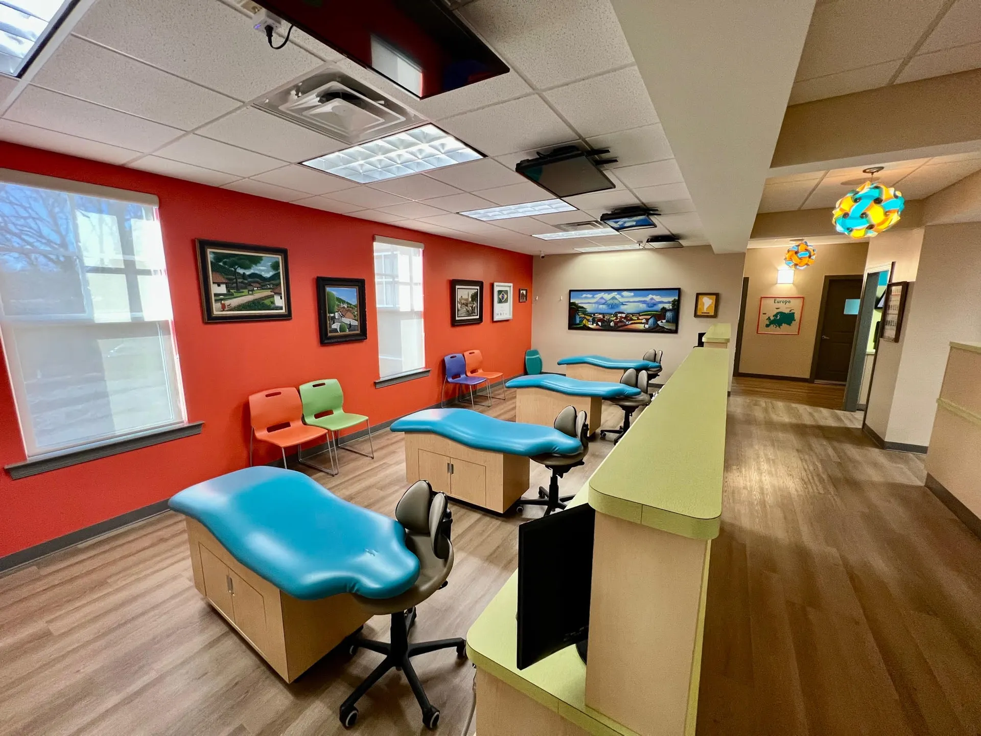 We didn’t just slap bright colors on the wall and call it “fun.” Our office is decked out with TVs on the ceilings, a commercial playground, and an iPad station in the waiting room.